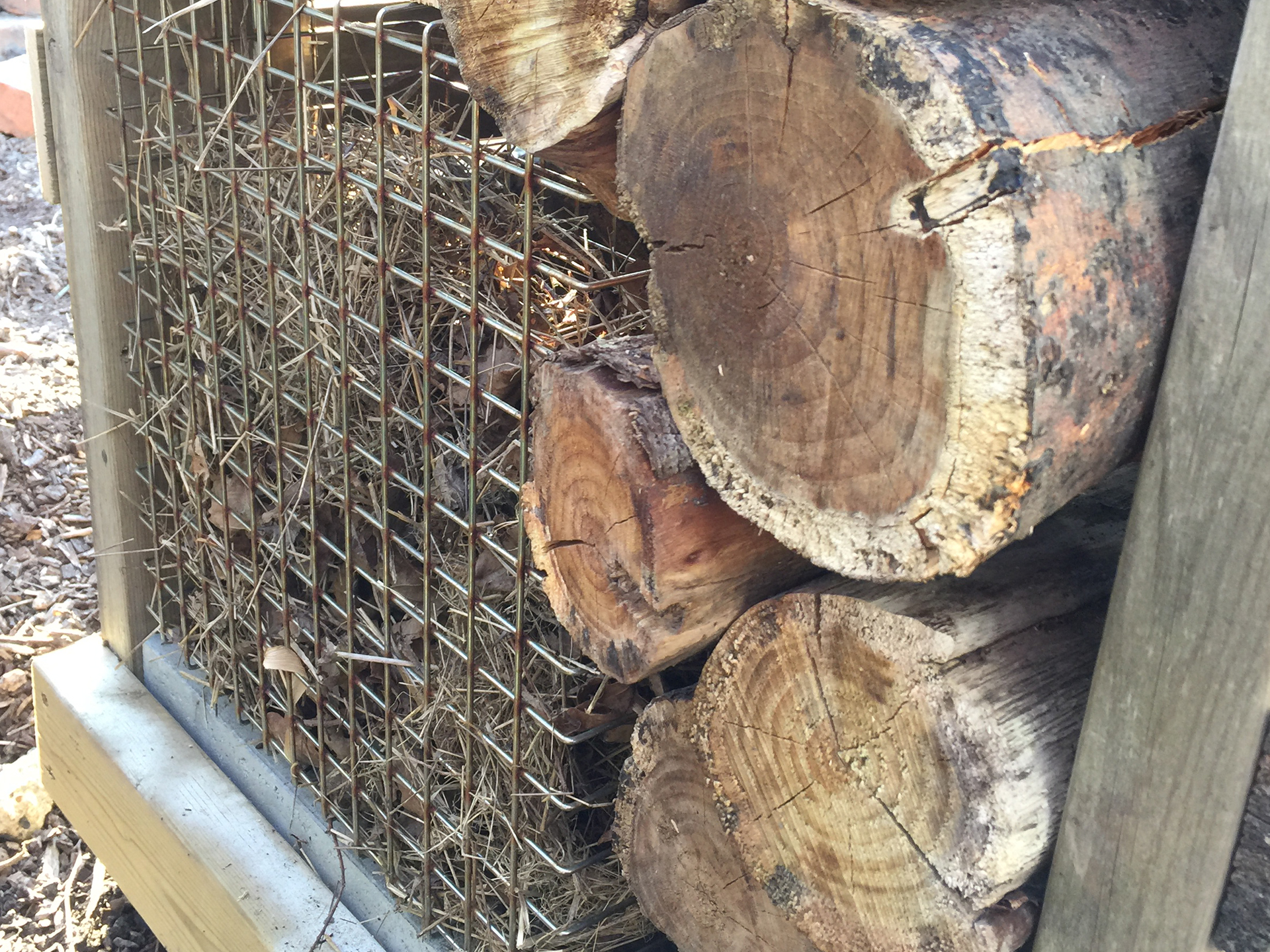 You have taken care of the hedgehogs, built the bug mansion frame, and filled the living roof with everything the bees and insects will love…Now it is time to fill your bug mansion! This is the part where you can get creative and use some time outside to forage for materials. Grab your wooden blocks from the pallets and drill a series of random holes into the blocks, going three quarters deep. These holes can range from 2mm – 8mm.