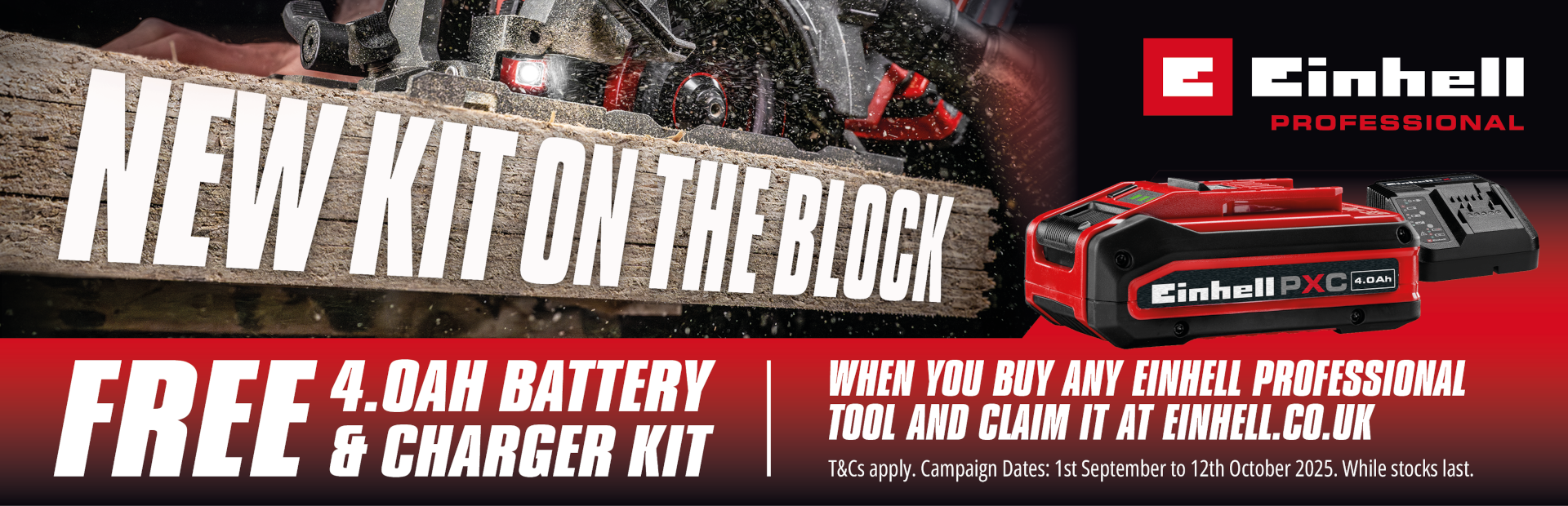 - Purchase any qualifying Einhell Professional tool from participating retailers between 1st of September and 12th of October 2025. (Please see full terms and conditions here).